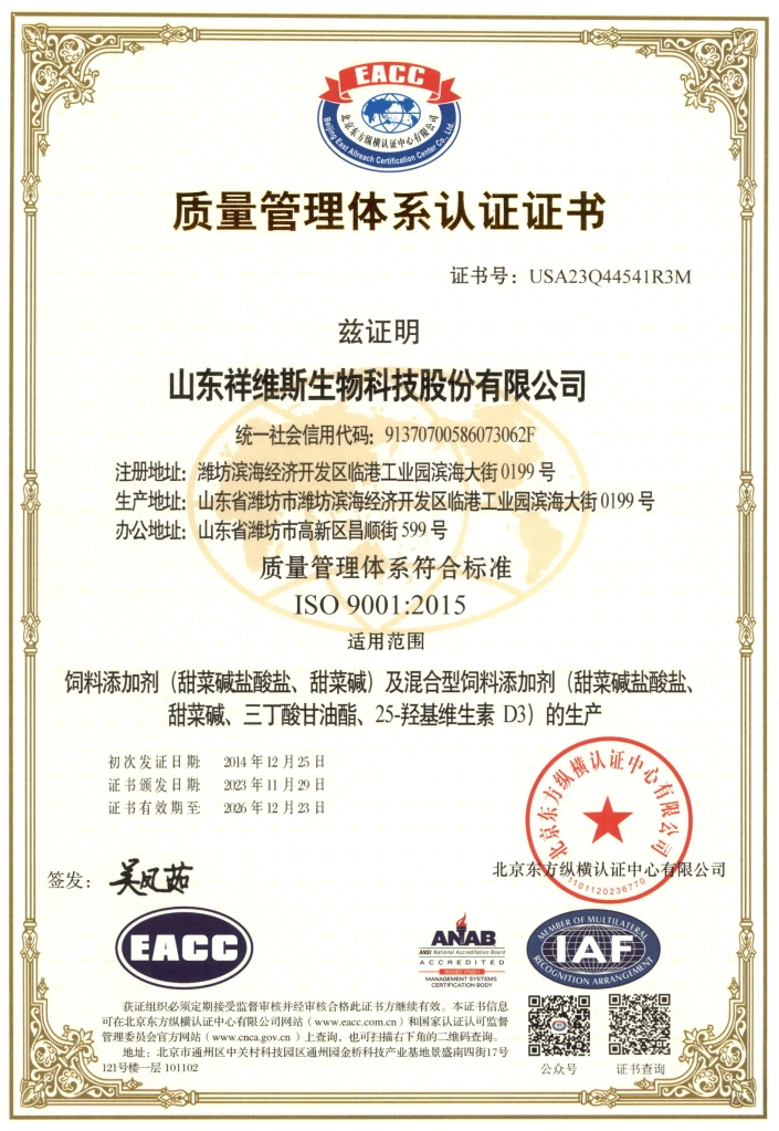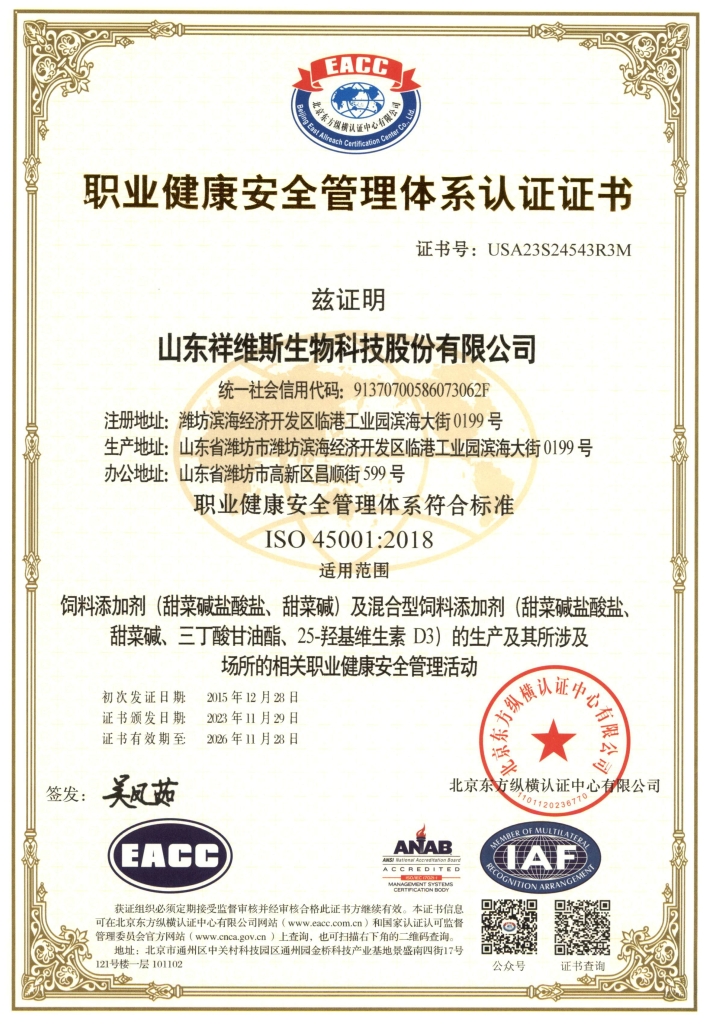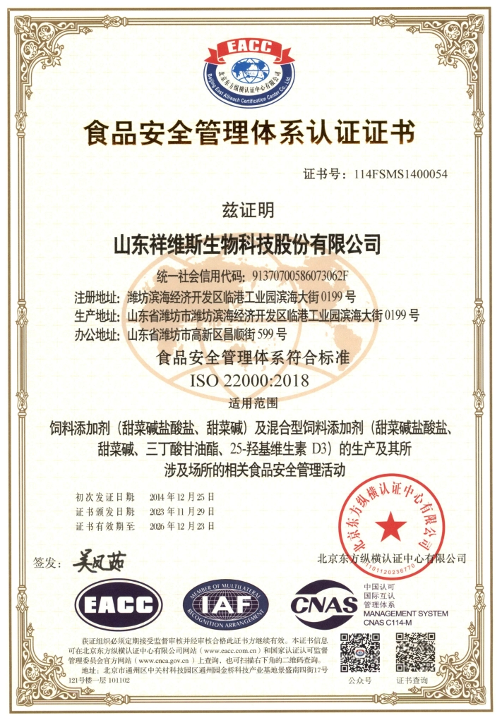 公司注重自主創(chuàng)新,公司主營(yíng)產(chǎn)品甜菜堿系列產(chǎn)品,行銷歐洲、北美、南美、亞洲等全球多個(gè)國(guó)家和地區(qū)。公司擁有自主知識(shí)產(chǎn)權(quán),是甜菜堿行業(yè)標(biāo)準(zhǔn)的制定者。