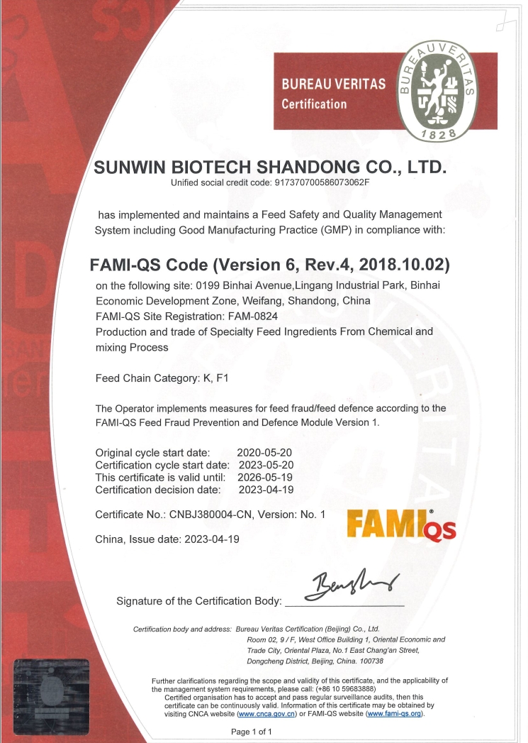 山東生物科技股份有限公司(簡(jiǎn)稱公司)成立于2011年,是一家集醫(yī)藥原料、食品和飼料添加劑,生物制劑等產(chǎn)品的研究開發(fā)、生產(chǎn)經(jīng)營(yíng)于一體的現(xiàn)代化高科技股份制企業(yè),位于山東省濰坊市濱海經(jīng)濟(jì)技術(shù)開發(fā)區(qū)綠色化工產(chǎn)業(yè)園內(nèi)。公司榮獲山東省瞪羚企業(yè)、山東省“專精特新”中小企業(yè)、現(xiàn)代畜牧業(yè)齊魯樣板飼料示范生產(chǎn)企業(yè)等榮譽(yù)稱號(hào)。